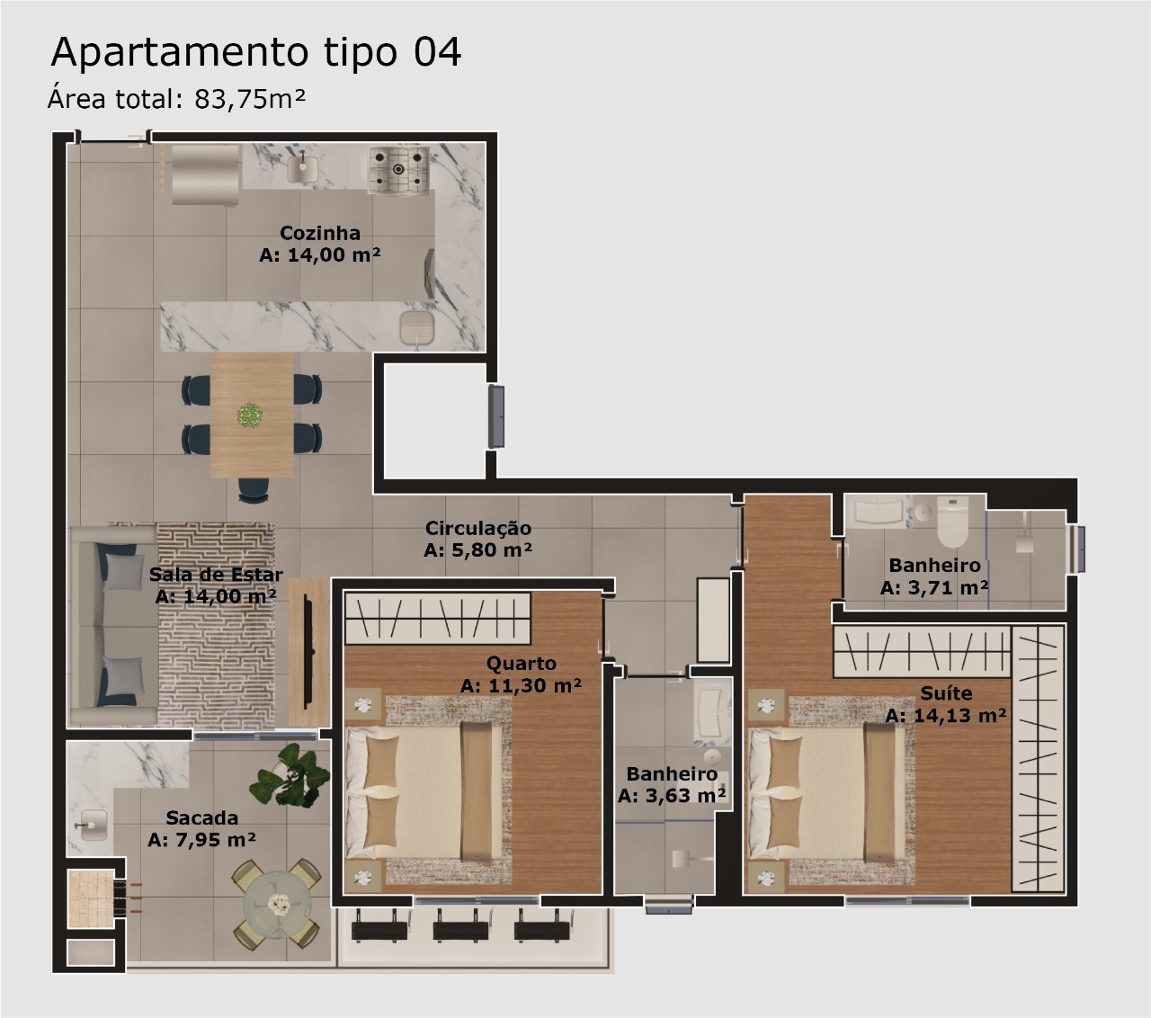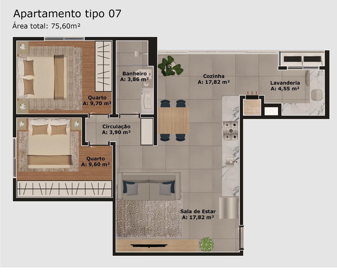 Cada ambiente foi planejado para proporcionar bem-estar, funcionalidade e ótimo aproveitamento de espaço, com detalhes que elevam a experiência de morar bem.