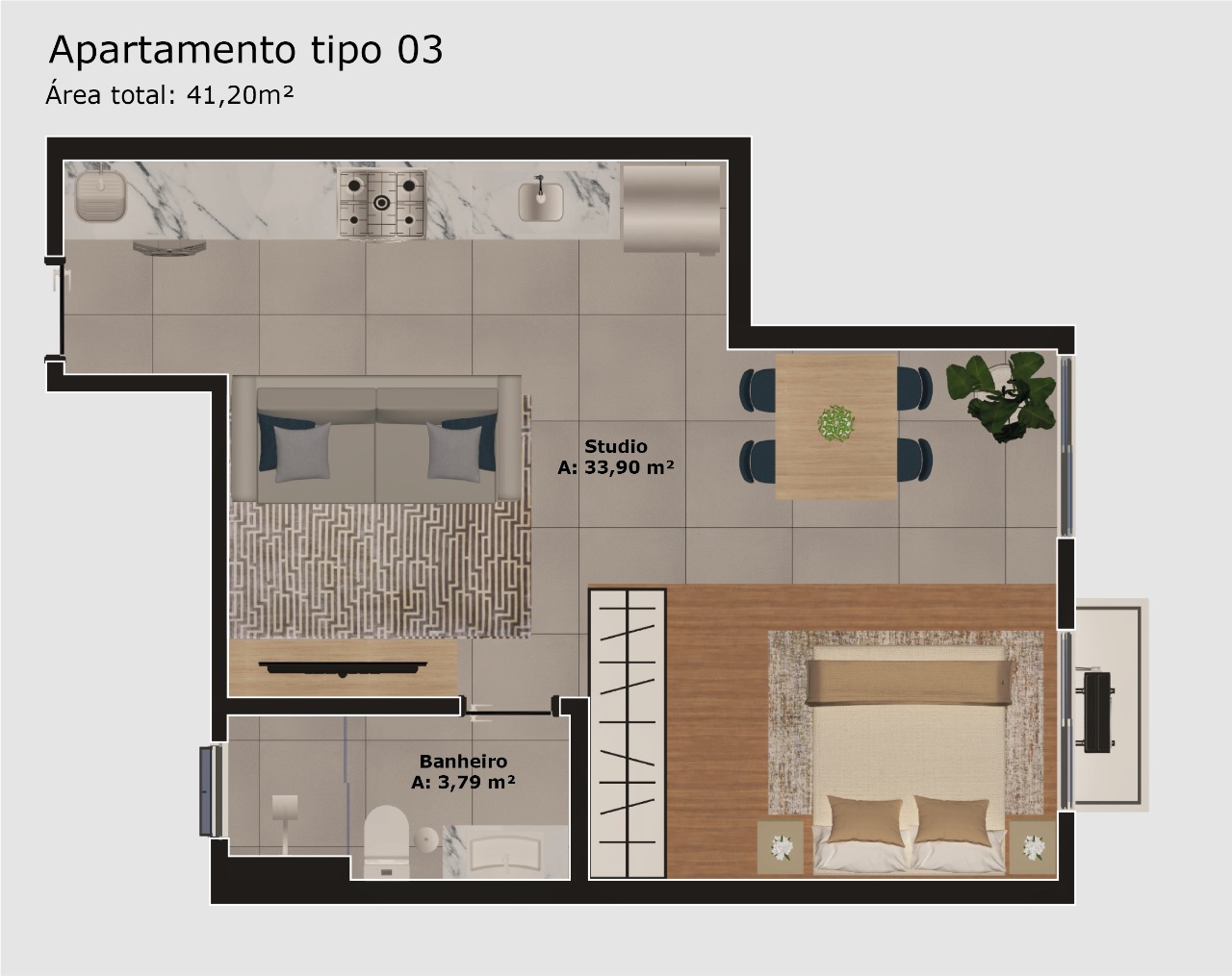 Apartamento tipo 3: 41,20 m² - studio