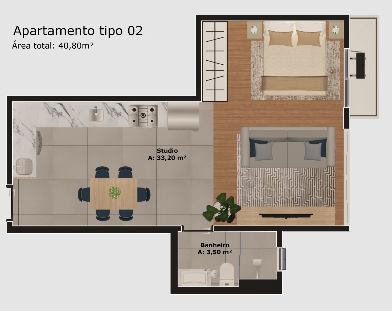 Apartamento tipo 2: 40,80 m² - studio