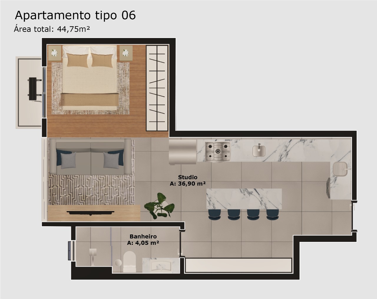 Apartamento tipo 6: 44,75 m² - studio