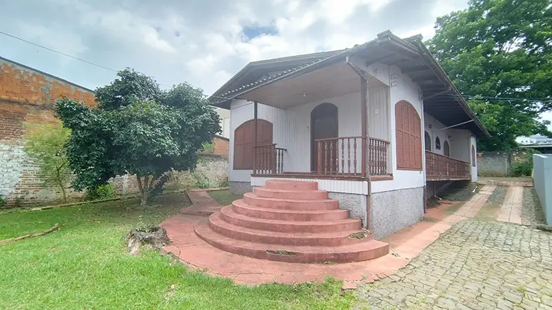 Encontra-se edificada sobre o terreno uma casa em madeira com área de aproximadamente 150 m².