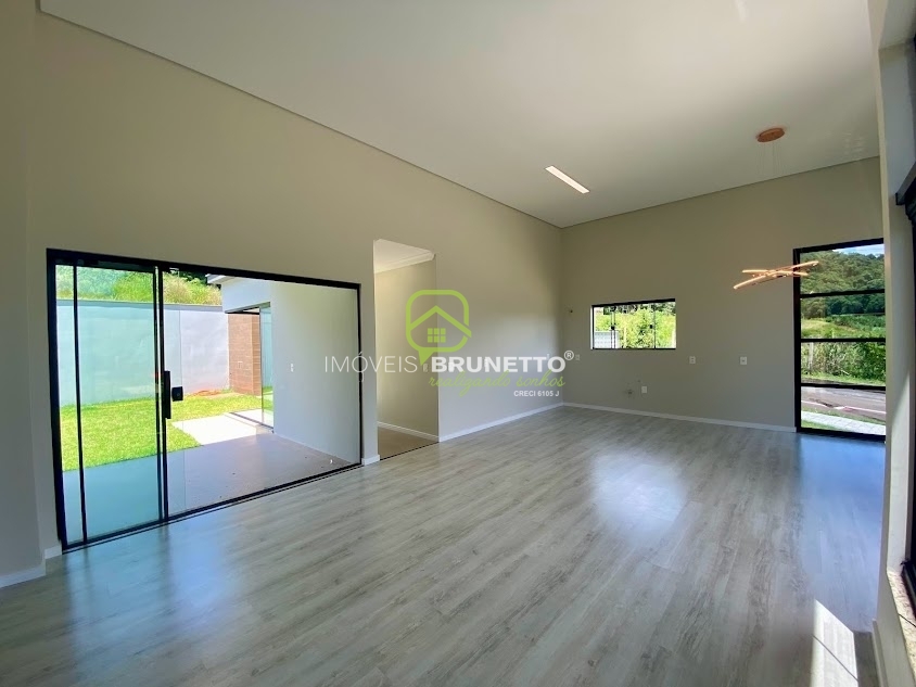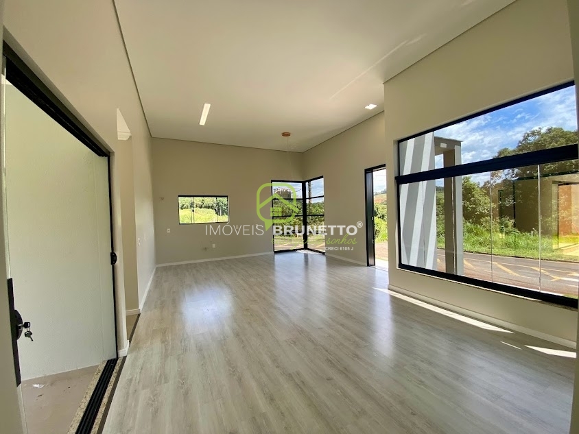 CASA NOVA! Com pé direito duplo no living, o espaço se evidencia juntamente com sua imponência. 1 Suíte + 2 Dormitórios bem posicionados, recebem iluminação e insolação matinal.