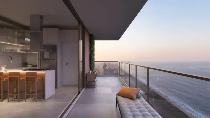 A sacada aberta é perfeita para desfrutar da brisa do mar, reunir amigos, brincar com as crianças ou simplesmente relaxar enquanto contempla a paisagem.