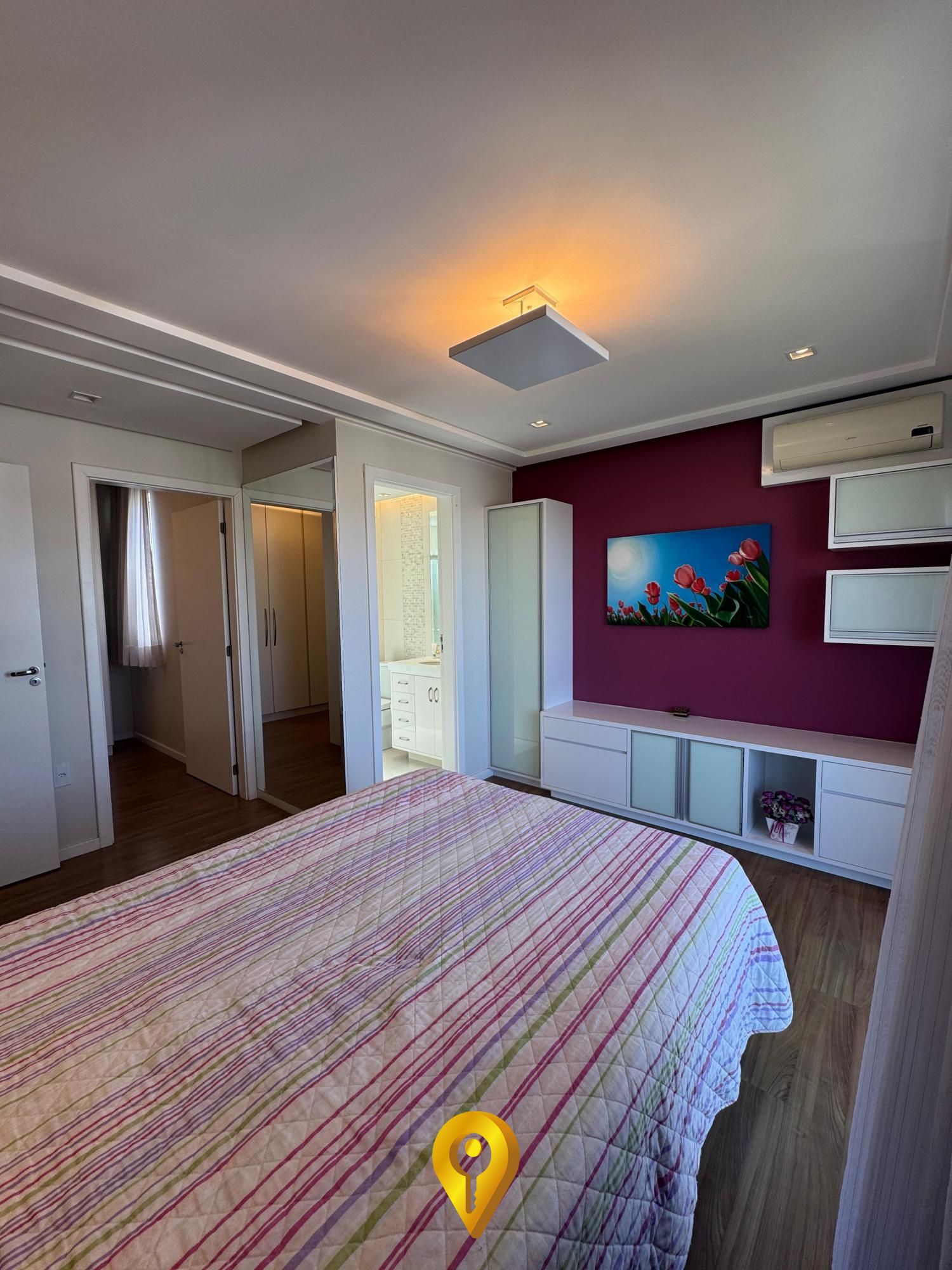 Além disso, o imóvel conta com 2 vagas de garagem, ar-condicionado, churrasqueira e armários embutidos, garantindo ainda mais comodidade.
