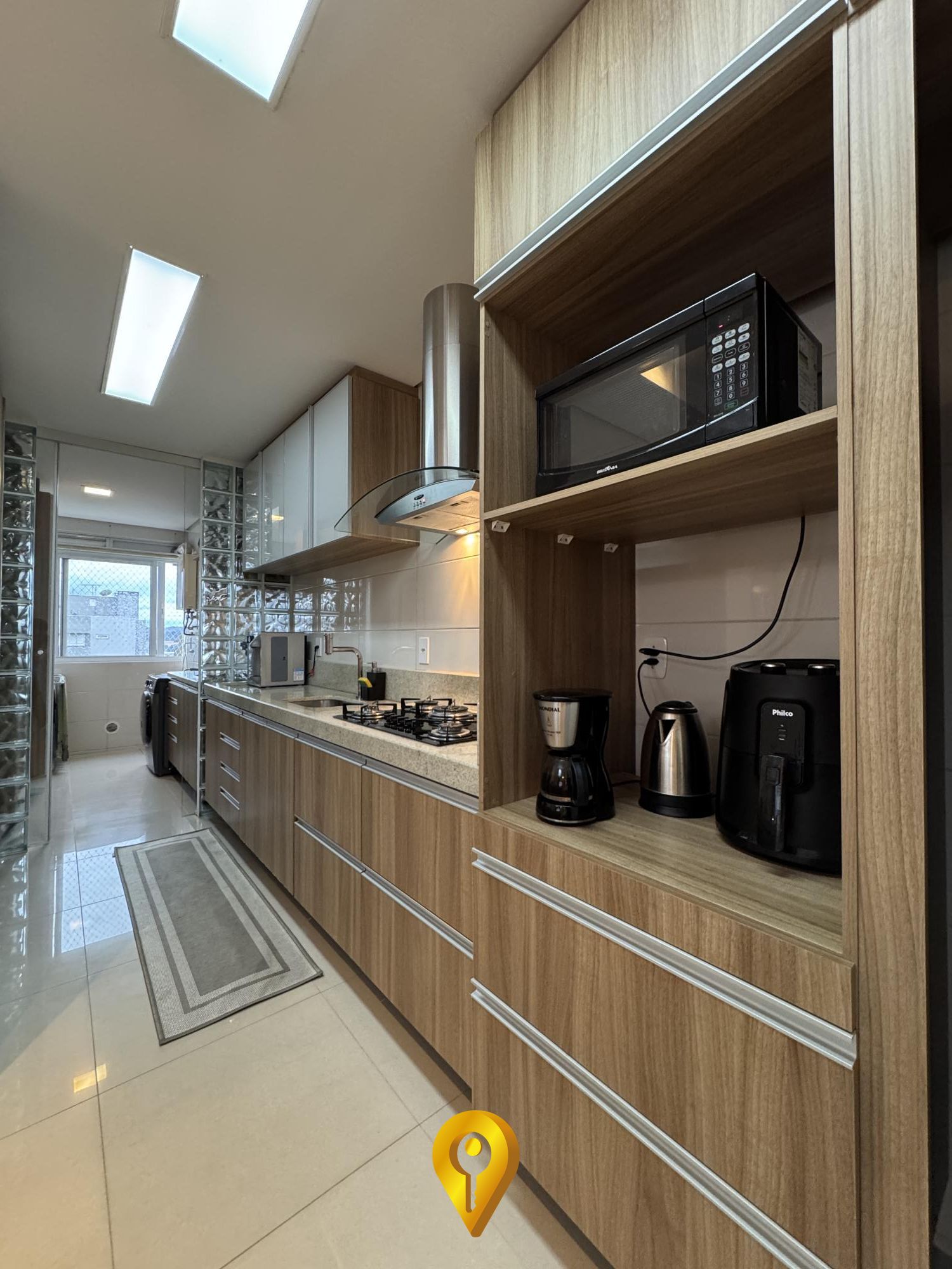 A ampla sala de estar e jantar, a cozinha equipada e a sacada com churrasqueira são ideais para momentos especiais.
