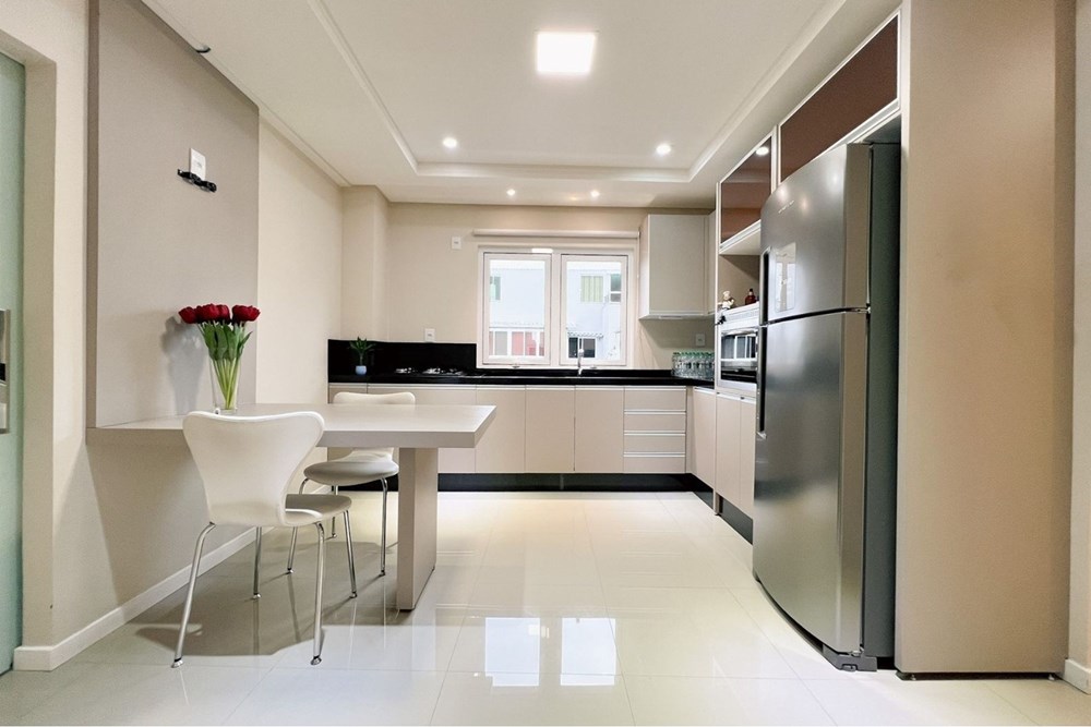 A sala de estar é ampla, perfeita para receber amigos e familiares com conforto, além de oferecer excelente ventilação e iluminação natural. A cozinha é separada, característica cada vez mais valorizada por quem aprecia organização e praticidade no dia a dia. Ela também conta com móveis planejados, proporcionando melhor aproveitamento do espaço e acabamento de qualidade.