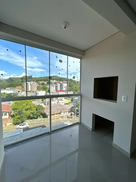 Com 70m², uma suíte mais um dormitório, amplo ambiente integrado com sala e cozinha, churrasqueira, sacada fechada e uma linda vista panorâmica.