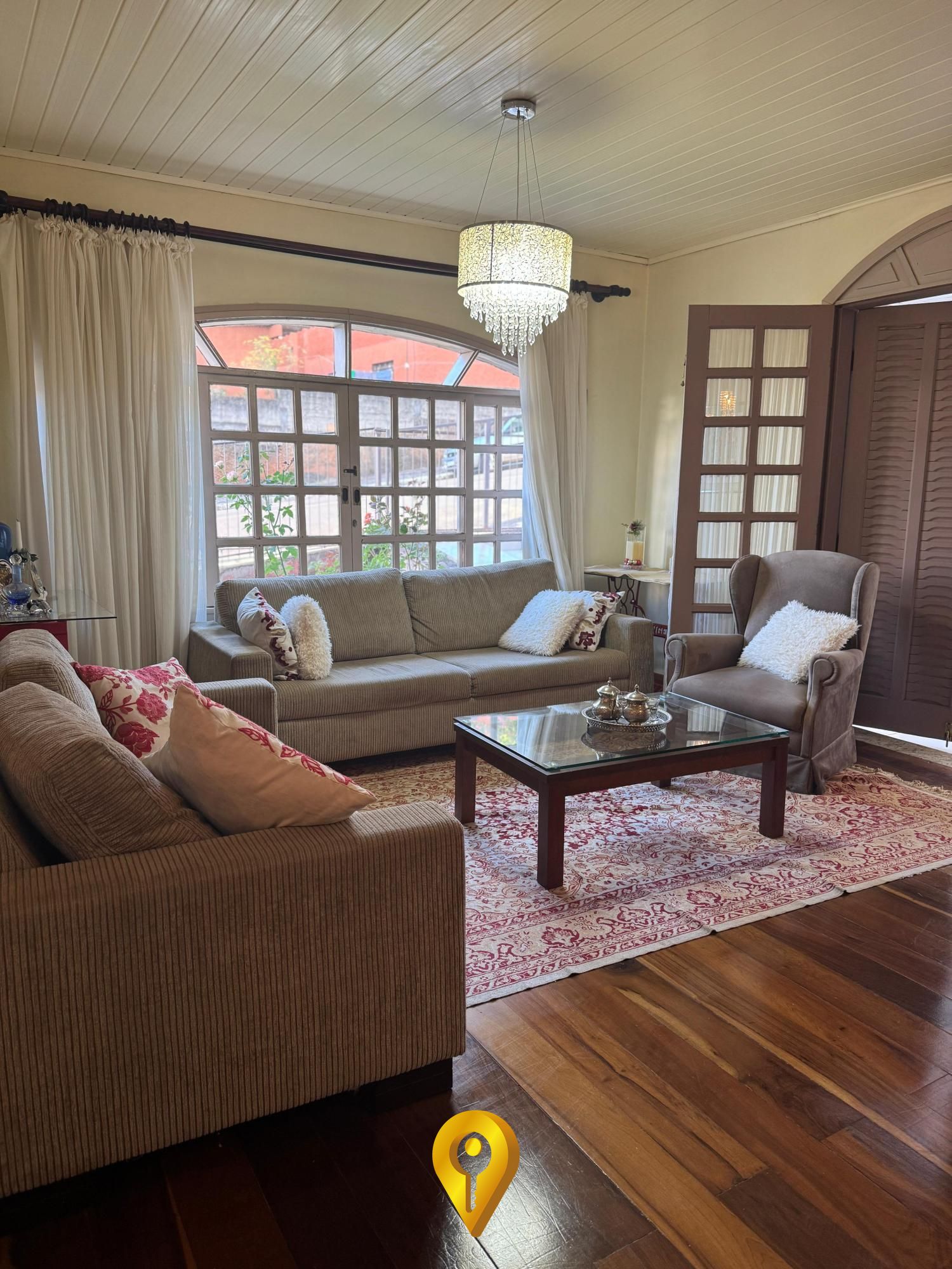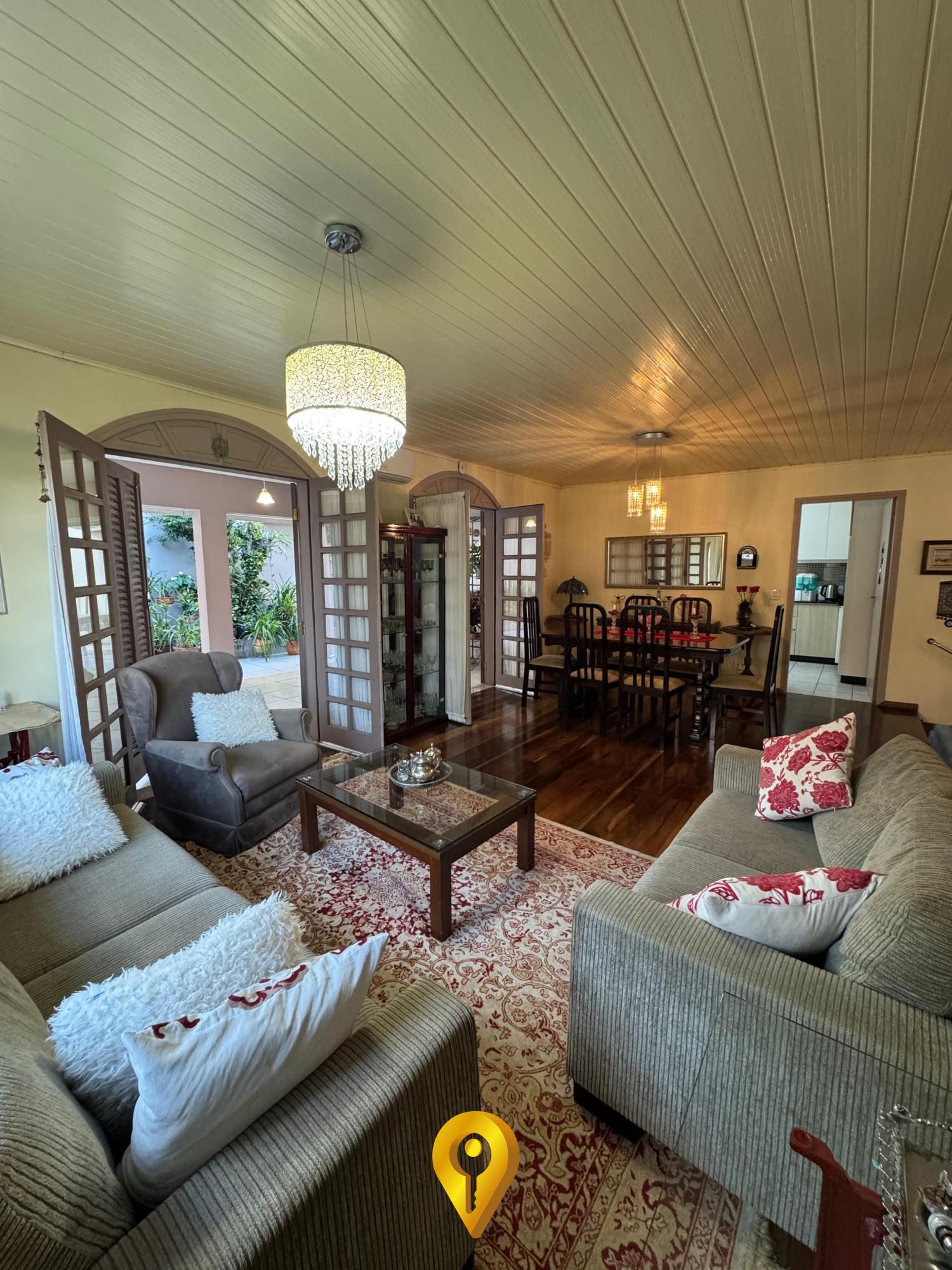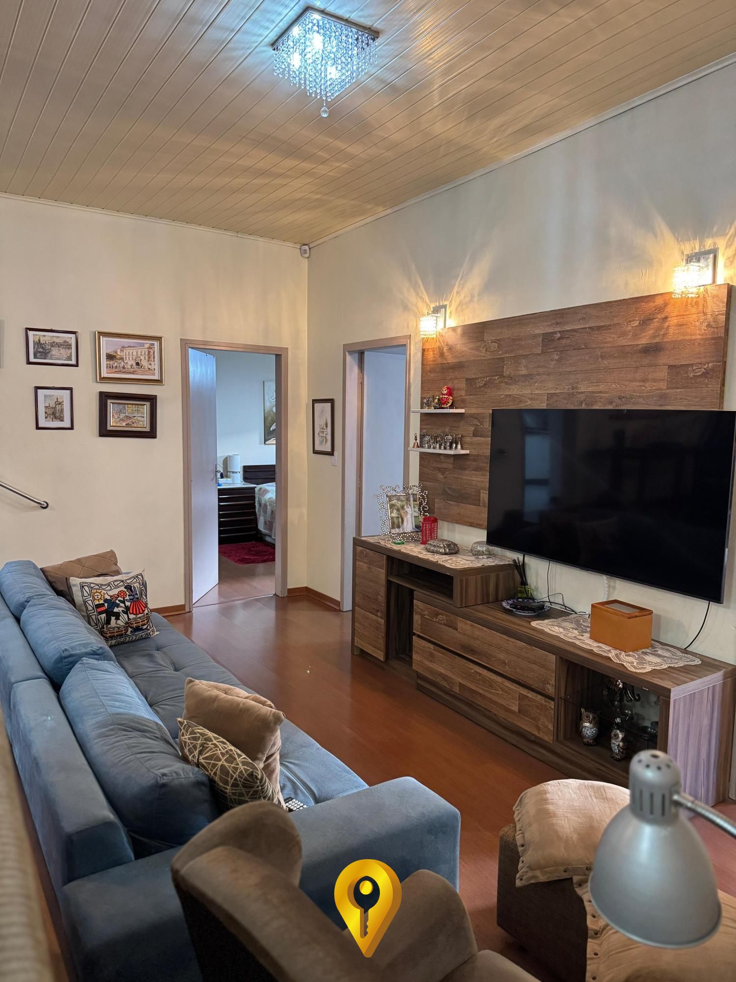 Piso de imbuia na sala, que agrega elegância e aconchego ao ambiente;