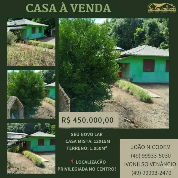 ???? Características do Imóvel: • Dimensões da Casa: 12x15 metros, oferecendo um espaço confortável e bem distribuído. • Área Total do Terreno: 1.050,00 m², com amplo espaço para lazer e outras atividades. ???? • Construção Mista: Alicerce , banheiro, área de serviço e lazer em alvenaria . ???? • Rodeio duplo, divisoras em Madeira de Imbuia ???? • Divisão em Duas Partes: A casa está dividida em duas partes, permitindo a possibilidade de dois aluguéis separadamente, ideal para investimento! ????