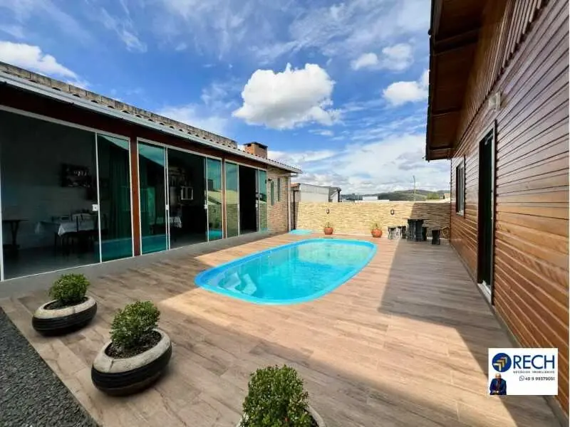 181 m² de área construída 3 quartos (sendo 1 suíte) Garagem para até 4 carros Piscina aquecida Painel solar para abastecer até 2 casas Todos os ambientes climatizados Sistema de câmeras de segurança Terreno com 364 m²