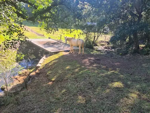 Riacho com águas límpidas cortando a propriedade;